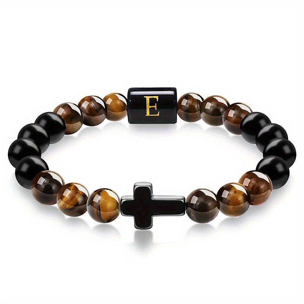 Natural Tiger Eye Stone Cross Letter Bracelet
