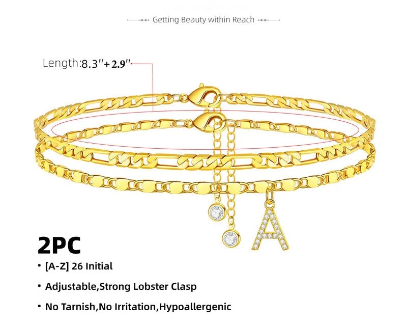 【LAST DAY 48% OFF】2 Pack - Initial Letter Pendant Anklets Set