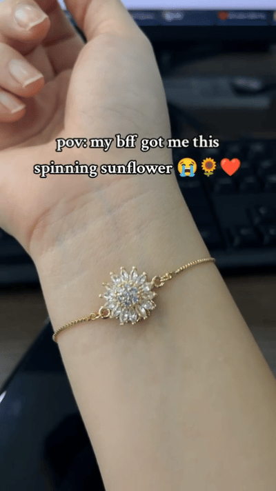 Sunflowers symbolize warmth, loyalty and faith, represents courage to pursue the happiness.  Leaf design adds layering to the ring, making spin bracelet more dainty and unique.